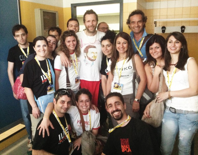 Eccoli, ora ci siamo tutti, ma tutta sta fretta non è servita a niente. Altri che hanno accesso al backstage tardano e così il nostro tempo per incontrare Jovanotti si assottiglia sensibilmente. Veniamo guidati dietro le quinte, due ingressi sorvegliati dalla security, poi una rampa di scale per arrivare in uno spogliatoi minuscolo.